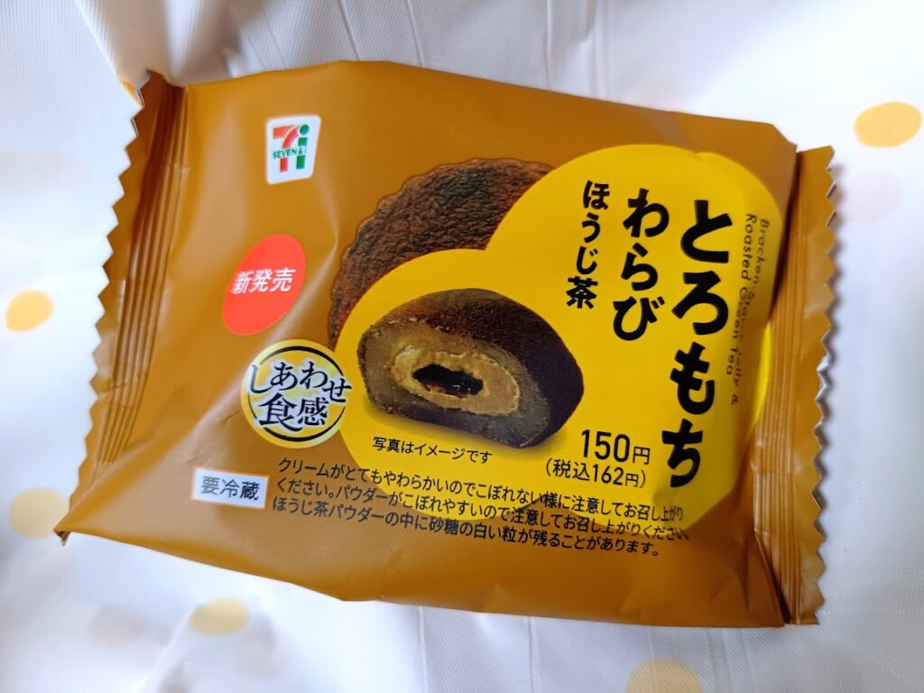 ほうじ茶パウダーがわらびもちを包んでおります。