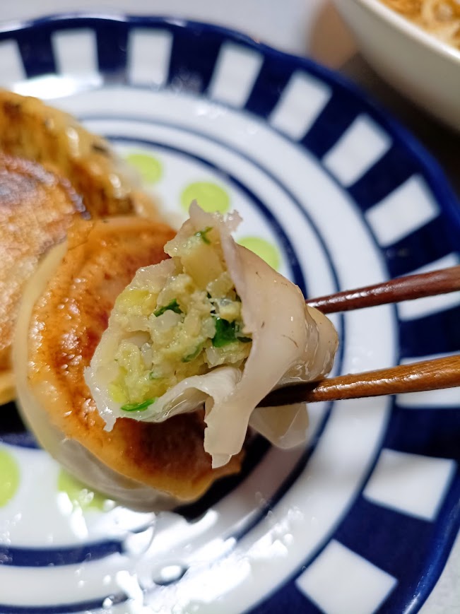 他の冷凍餃子と違うところは皮の厚みやモチモチ感。