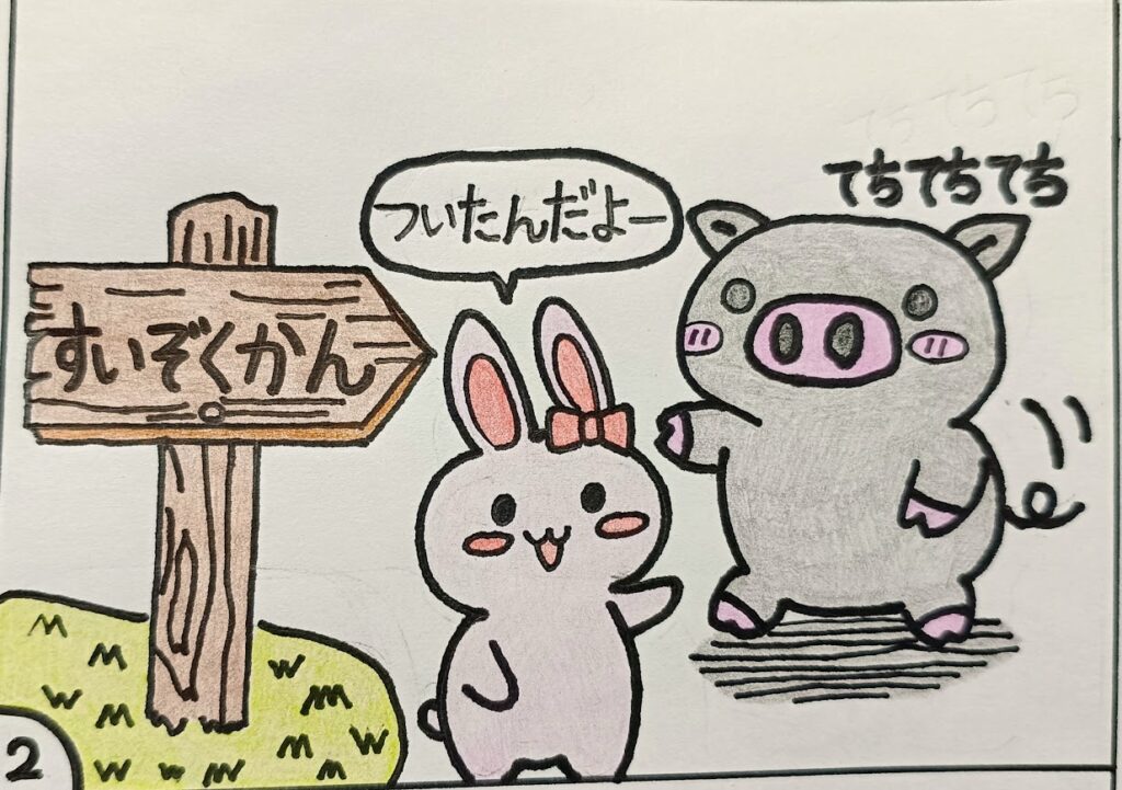 うさぎの「うさ」はそんなぶーと一緒に水族館に向かうことになります。