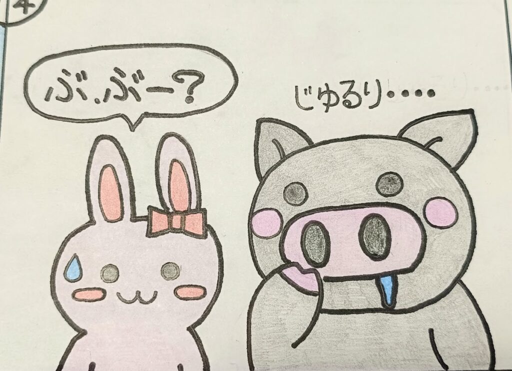 うさはちょっと心配そうにぶーを見つめます・・・。