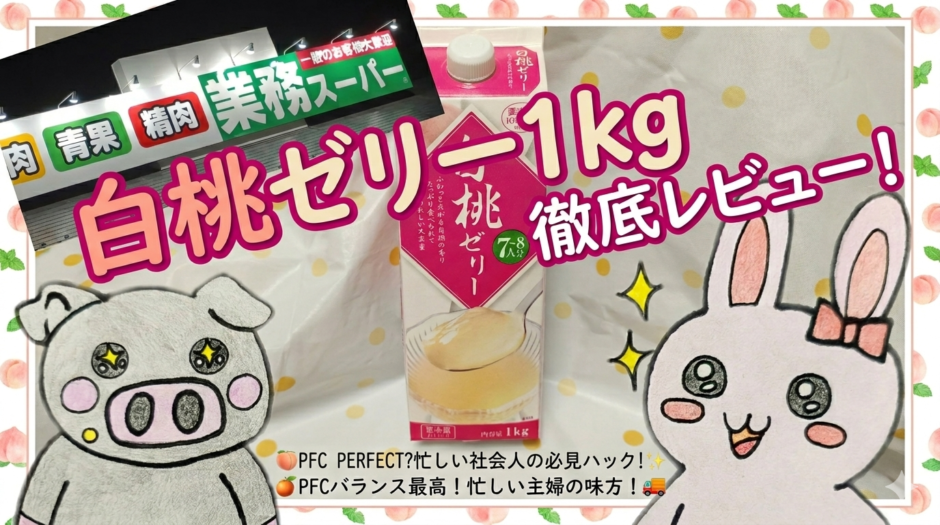 - 業務スーパー白桃ゼリー:1kg約300〜350円 → 100gあたり約33円